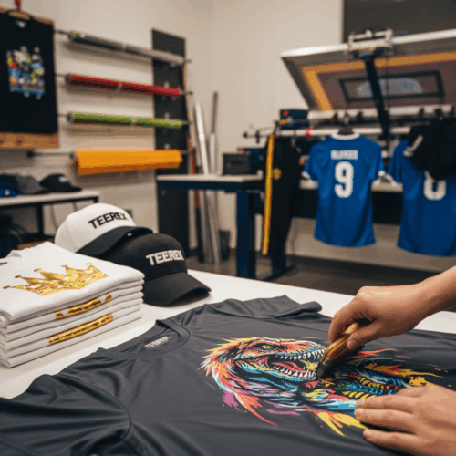 Hva vi tilbyr: Tekstiltrykk er den perfekte måten å gi liv til logoer, merkevarer og meldinger på klær. Vi leverer trykk på alt fra enkle pannebånd og T-skjorter, til komplekse arbeidsklær og til og med hestedekken. Vi gjør det enkelt: Vi kan skaffe alt av plagg du trenger fra våre kvalitetsleverandører, eller du kan ta med dine egne medbrakte produkter! Kvalitet og Teknologi: Vi bruker moderne DTF (Direct to Film) og andre ledende teknologier for å sikre at trykkene dine sitter lenge, holder på fargen vask etter vask, og ser profesjonelle ut.